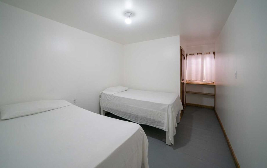 We have ## private rooms with en suite bathrooms and fans. Of these rooms we have rooms with one double bed and rooms with two single beds. Each room is located on the second floor of Laguna. Each room is approximately 32 square feet and comes with beds, sheets, pillows, towels upon request and a standing fan. These rooms also have a private bathroom equipped with a sink toilet and hot water shower. These rooms are not included with our core courses but you will receive a discounted rate if you wish to upgrade to these rooms for the days that you are diving with us.